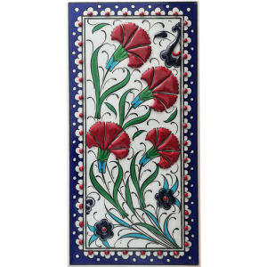Kütahya çini geleneğinin zengin renkleriyle özenle el yapımı üretilen 10X20 cm çini pano, duvar uygulamalarında şıklık ve dayanıklılık sunar. Her bir karo, deneyimli ustalar tarafından geleneksel tekniklerle işlenir, fırınlanır ve elden geçirilerek eşsiz bir sanat eserine dönüştürülür.