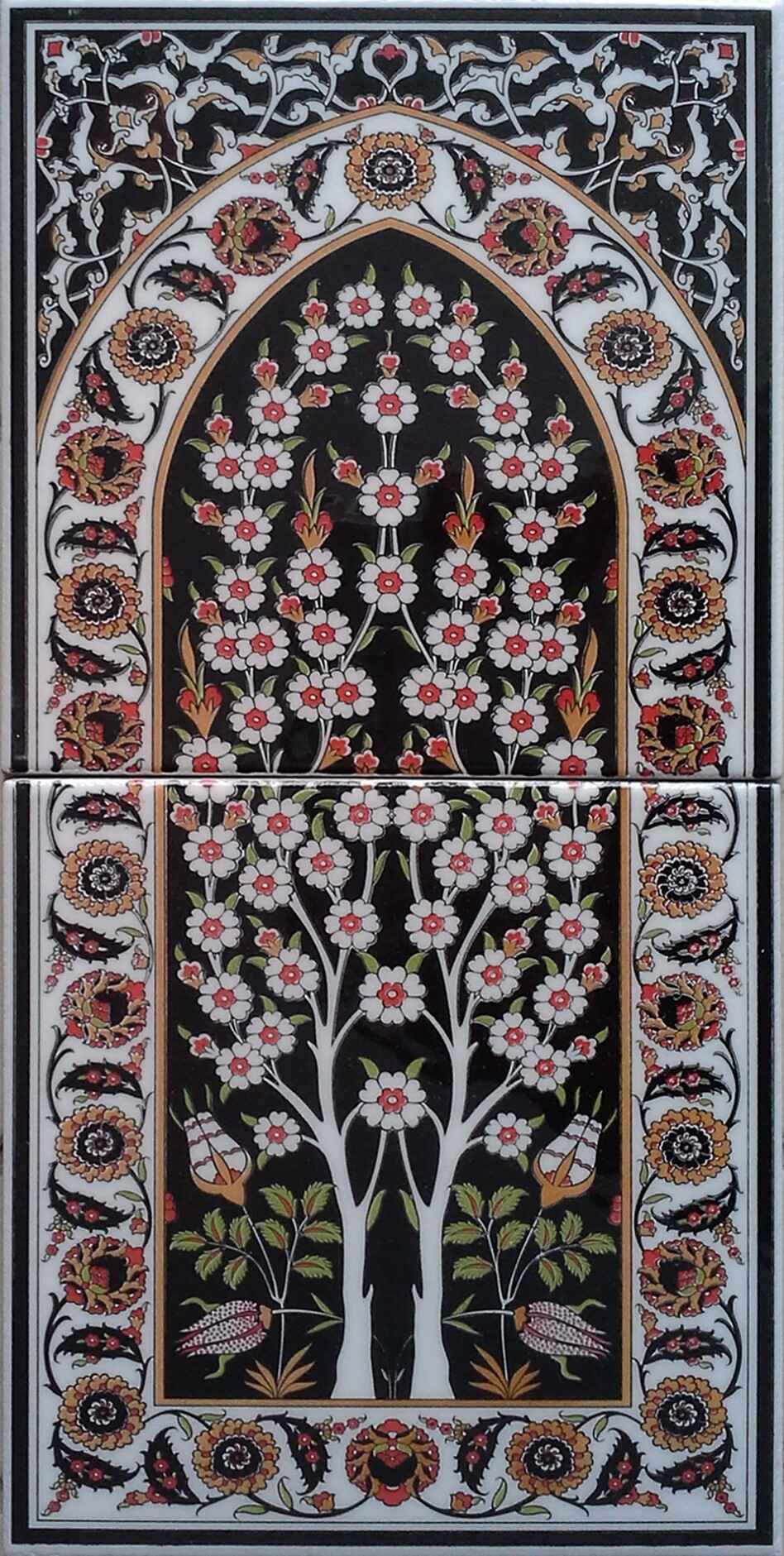 Kütahya çini geleneğinin zengin renkleriyle özenle el yapımı üretilen 20X40 cm çini pano, duvar uygulamalarında şıklık ve dayanıklılık sunar. Her bir karo, deneyimli ustalar tarafından geleneksel tekniklerle işlenir, fırınlanır ve elden geçirilerek eşsiz bir sanat eserine dönüştürülür.